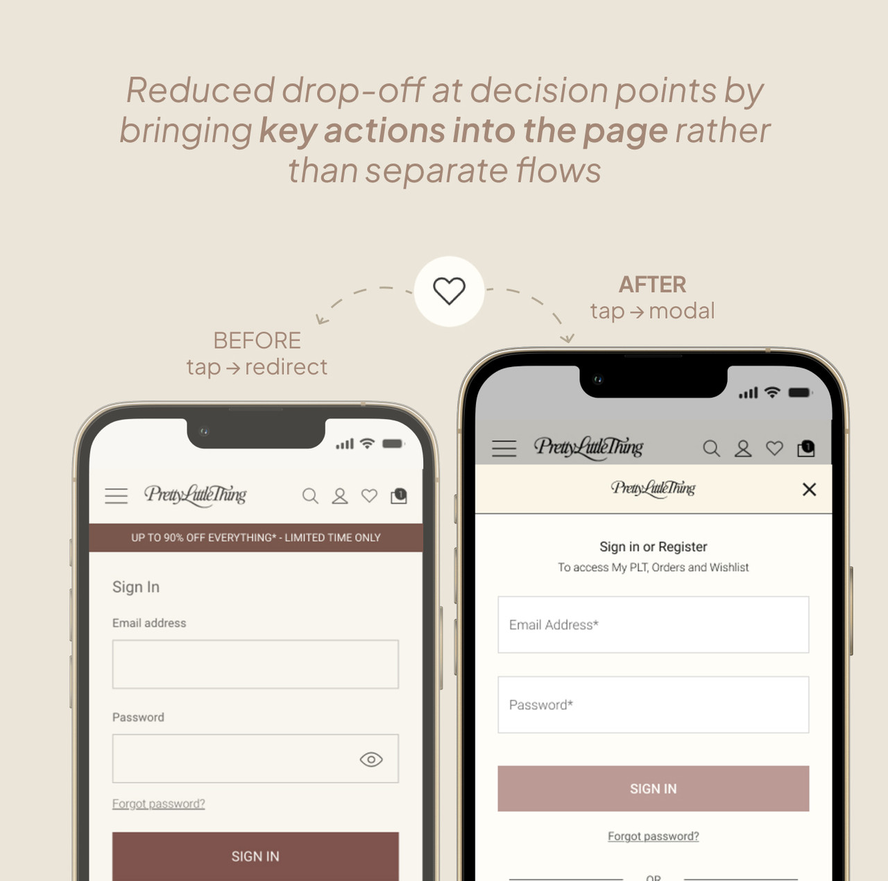 At PrettyLittleThing I owned design independently across core journeys, built and evolved the design system, and progressed from UX Designer to Design and Experimentation Manager.