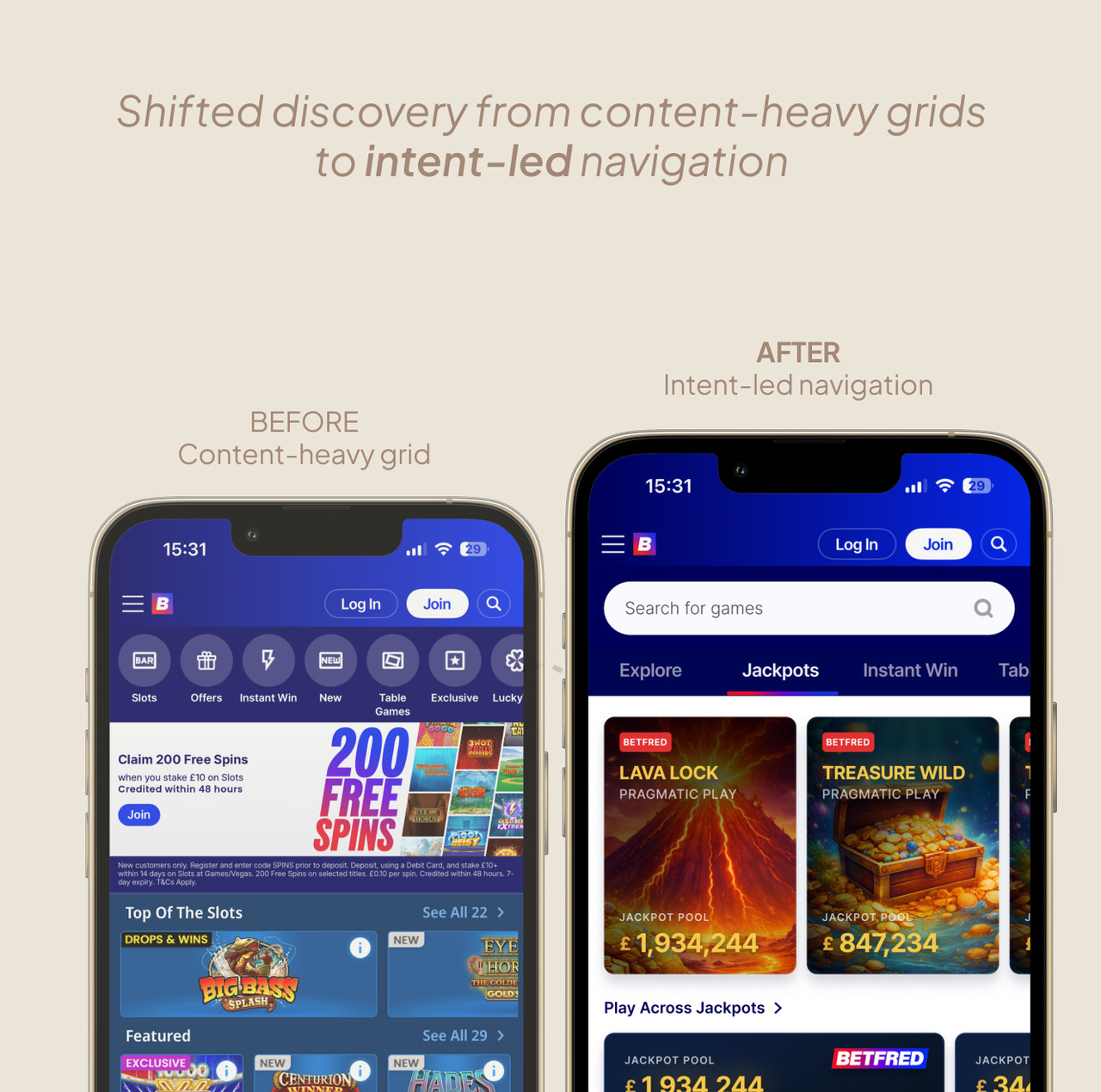 A concept redesign focused on restructuring a grid-heavy experience into clear, intent-driven journeys.